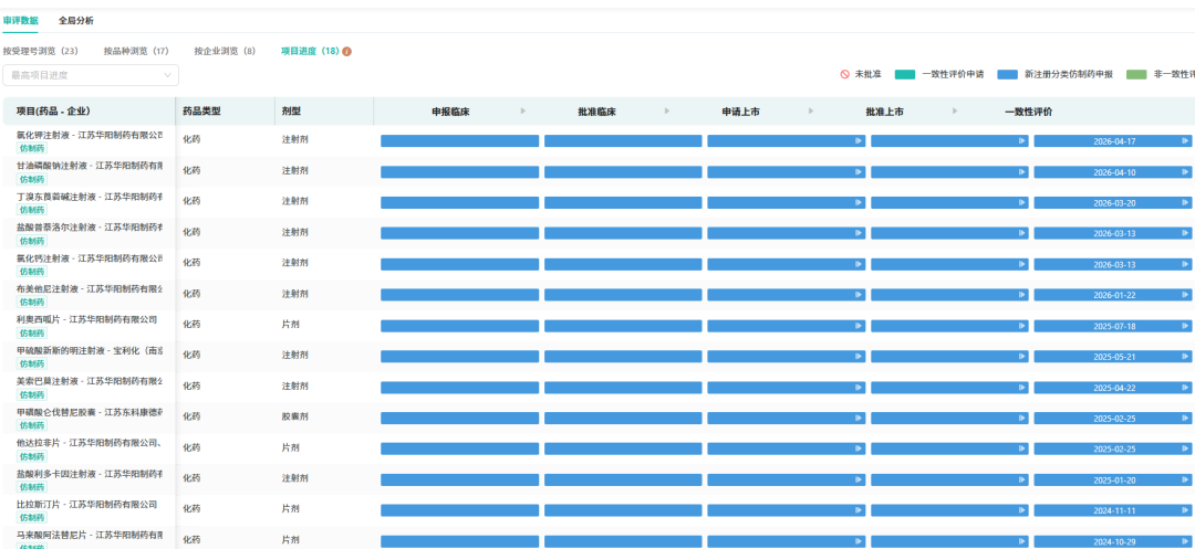 截至目前,江苏华阳制药(含子公司)已有超过15个品种获批并视同通过一致性评价,其中乌帕替尼缓释片与比拉斯汀片两款为首家过评品种。