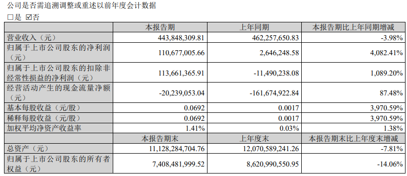 沃森生物公告称,2026年第一季度实现营业收入4.44亿元,同比下降3.98%;归属于上市公司股东的净利润为1.11亿元,同比增长4082.41%。