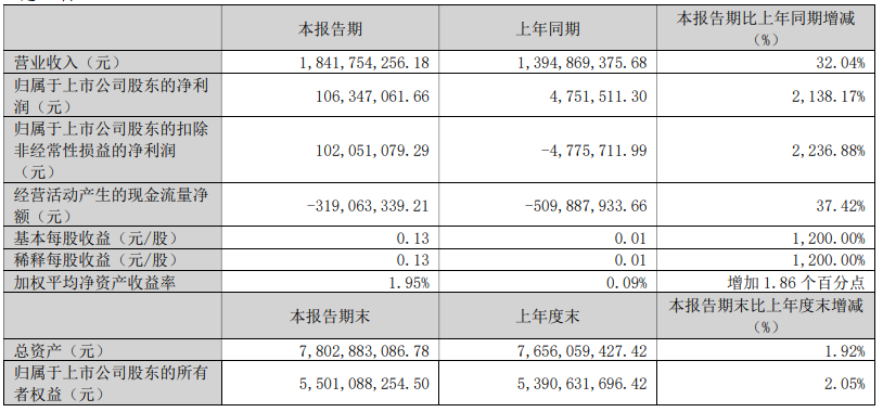铜冠铜箔公告,2026年第一季度实现营业收入18.42亿元,同比增长32.04%;归属于上市公司股东的净利润为1.06亿元,同比增长2138.17%。