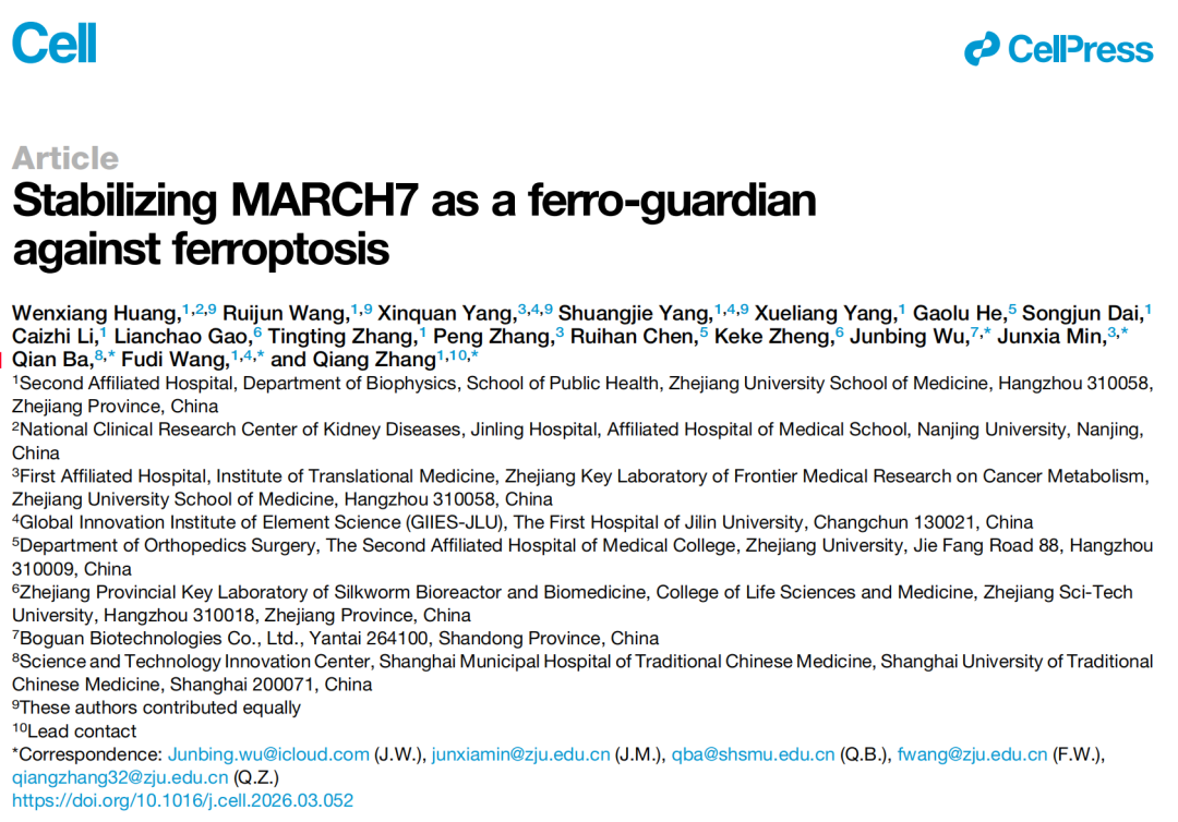 发现了 MARCH7 这一全新的铁死亡抑制因子,为理解细胞铁稳态提供了新视角;