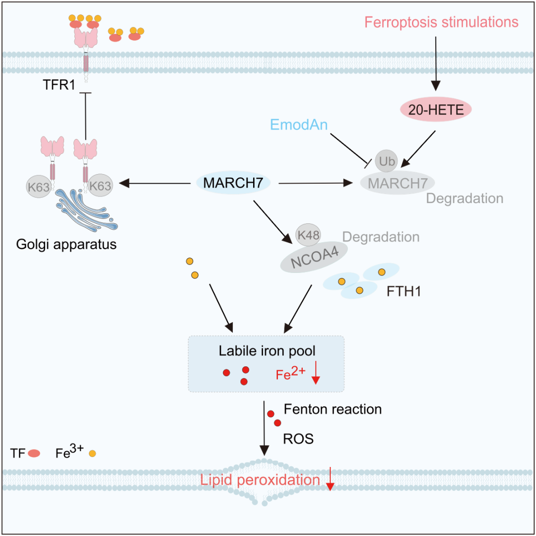 开发了首个 MARCH7 稳定剂 EmodAn,为治疗铁稳态失衡相关疾病提供了潜在新策略。