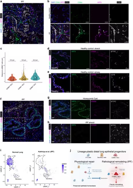 肺损伤后的修复依赖于上皮祖细胞群的协同激活与分化。当这一再生程序失调时,上皮可塑性会转向不良适应性重塑,最终导致慢性组织瘢痕形成。此类不良修复反应是重症肺部疾病的典型特征。这类疾病的一个突出病理表现是:基底细胞(BCs)异常扩增并异位出现在远端肺泡区,形成非典型上皮结构,与再生障碍及进行性纤维化密切相关。