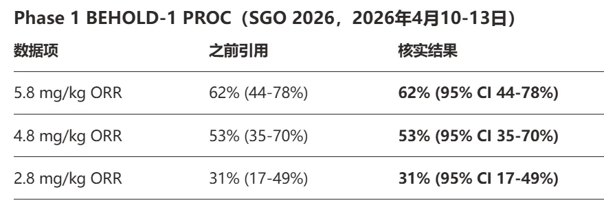 Mo-Rez在最新披露的BEHOLD-1研究中在铂耐药性卵巢癌(PROC)最高剂量组的ORR为62%(5.8