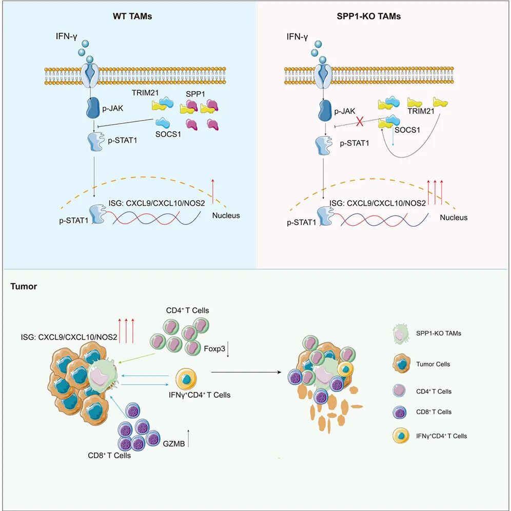 巨噬细胞中胞内 SPP1 负向调控 TAM 中的 IFN-γ-STAT1-ISG 通路;