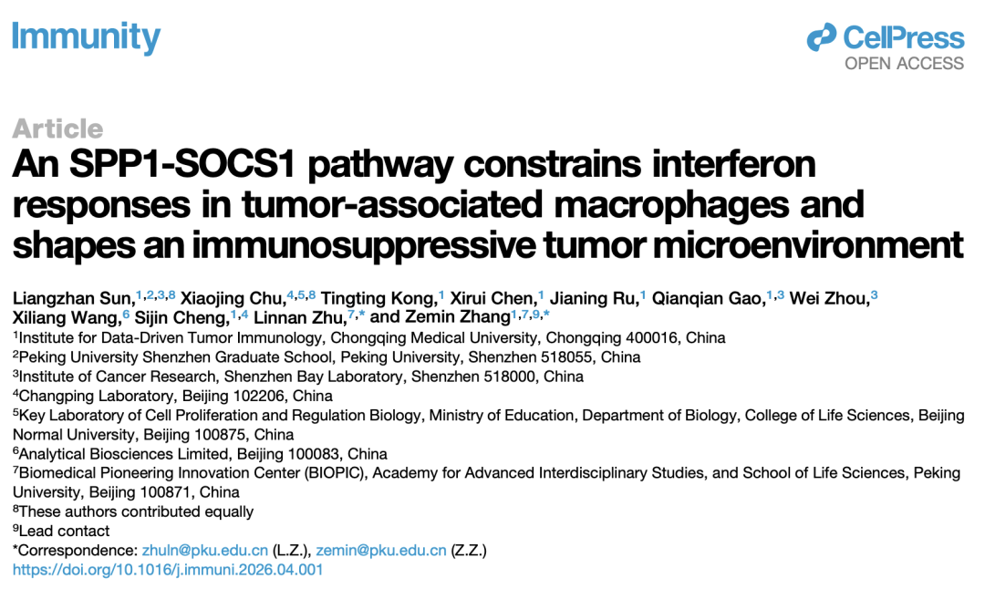 张泽民院士最新Immunity:发现癌症免疫治疗新靶点——SPP1