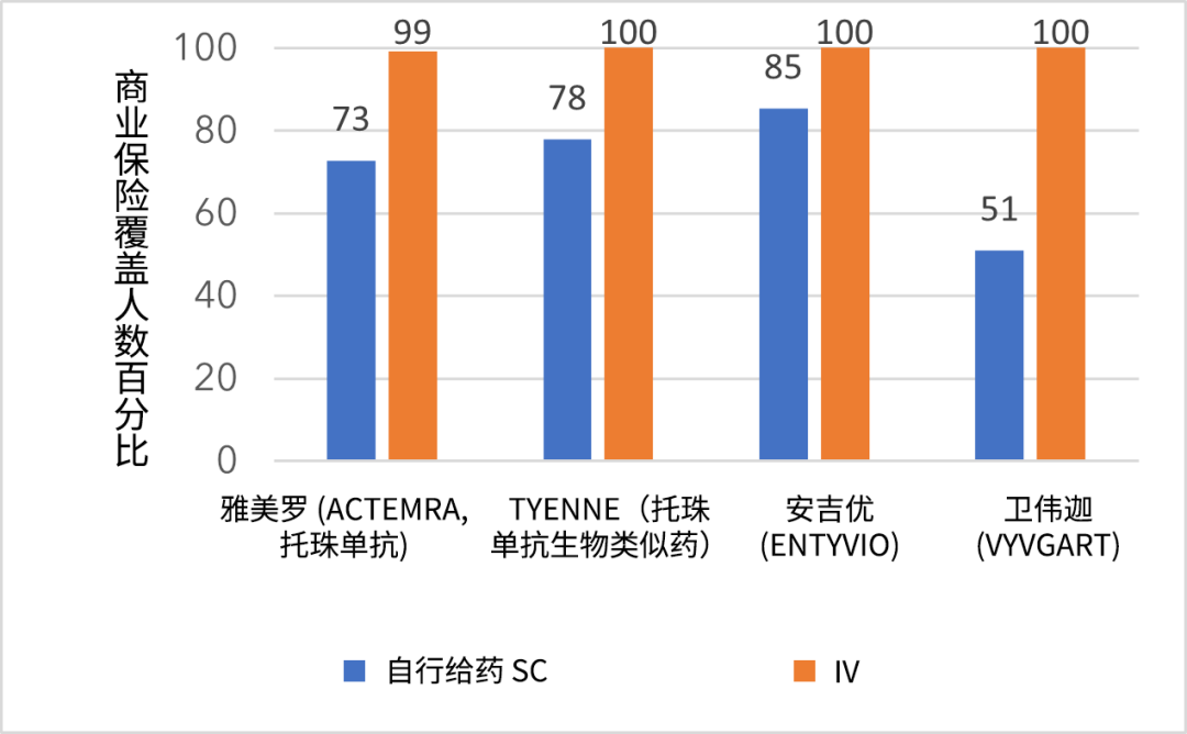 保险类型至关重要。联邦医疗保险计划更可能倾向于 IV 药物的准入,而商业保险计划在 IV 与 SC 剂型之间表现出的覆盖差距相对更小。