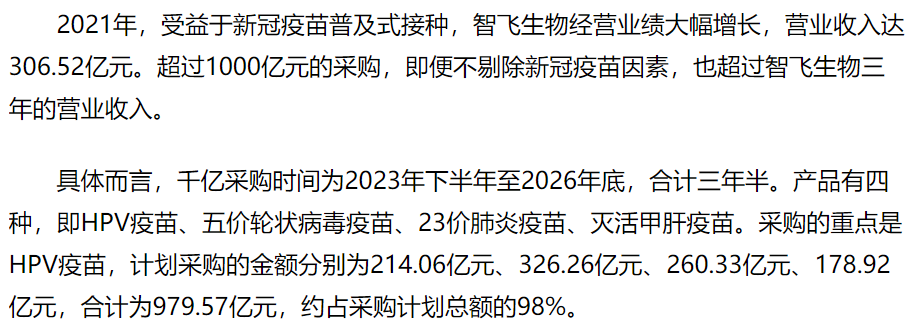 那一年,智飞生物跟默沙东签了一份三年期、总额超千亿的采购协议。三年,1000亿。