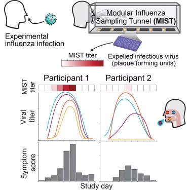 上的最新研究,给出了迄今为止最清晰、最直接的答案——感染流感的人会向空气中排出具有感染性的活病毒,而不同个体排出的活病毒量,差异最高可达三个数量级(千倍以上)!这项研究通过受控人体感染模型,首次完整追踪了流感病毒从感染者体内到呼出空气的全过程,同时破解了病毒遗传多样性在传播中的变化规律,为流感的空气传播机制、超级传播现象的成因,提供了颠覆性的新见解。