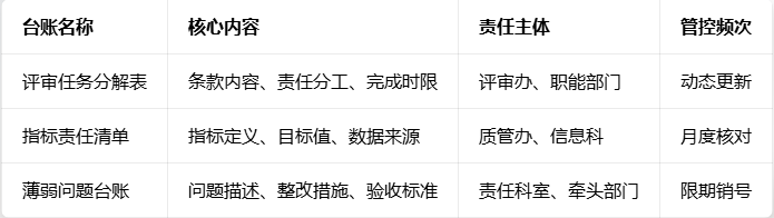 等级评审标准体系庞杂、条款细致、要求严格,统筹迎检必须以标准为根本遵循,做到学深、悟透、用准。医院应组织全院分层分类开展标准培训,院领导班子重点把握评审导向与战略要求,职能部门聚焦条款分解与过程监管,临床科室聚焦诊疗规范、指标管控与现场应答。通过逐条对标、逐项梳理,形成《评审任务分解表》《指标责任清单》《薄弱问题台账》,明确责任领导、责任部门、完成时限、佐证材料及验收标准,实现“一条款一责任人、一指标一管控路径”。