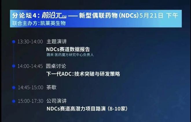 凯莱英生物作为本次活动的赞助支持伙伴,携手医药魔方,诚邀广大创新药研发团队、项目方,共同参与大会的「前沿π——高BD潜力项目展示」环节,为您的创新药项目链接更多优质资本与产业资源,加速创新成果转化。