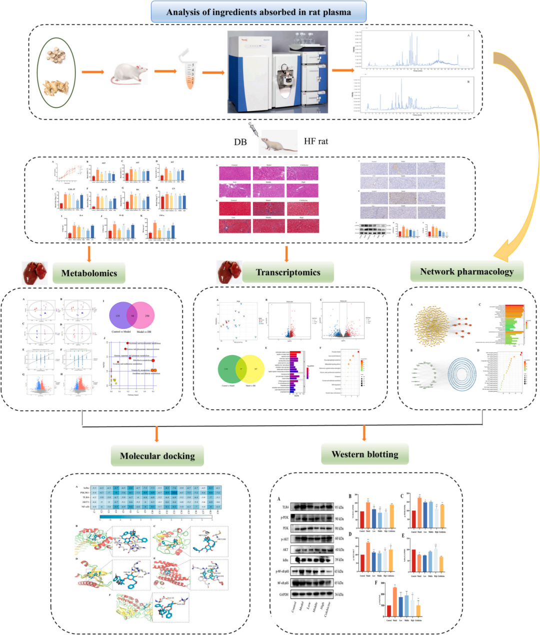 肝纤维化(Hepatic fibrosis,HF)是多种慢性肝损伤引发的共同病理修复反应,若持续进展可导致肝硬化、肝细胞癌等终末期肝病。目前,针对HF的有效治疗手段仍显不足,因此探寻有效的抗纤维化药物至关重要。当归逍遥散作为经典中药复方,临床研究证实其对肝硬化患者肝损伤具有改善作用。在该复方中,当归-白芍药对(Danggui-Baishao herb pair,DB)是发挥核心作用的关键。与现代复杂中药复方相比,精简的草药配对因其化学成分相对明确、作用机制更易于阐释而受到越来越多的学术关注。当归-白芍药对是治疗肝纤维化的关键,然而,关于两药联合应用抗肝纤维化的专项研究尚不充分。本研究采用转录组学、代谢组学和网络药理学相结合的方法,旨在阐明DB的物质基础和作用靶点,同时研究其对心衰的潜在作用和机制。