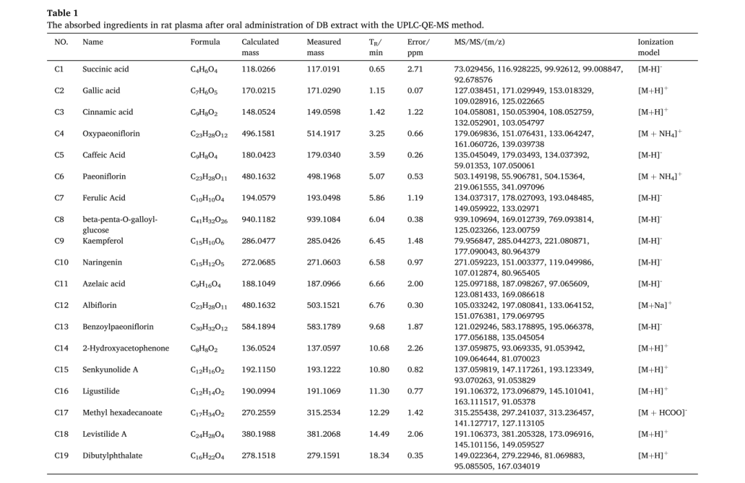 本研究从DB提取物中鉴定出19种入血成分,并基于网络药理学、转录组学与代谢组学整合策略,系统探究DB治疗肝纤维化的核心靶点与作用机制。综合分析表明,DB可能通过山奈酚、苯甲酰芍药苷、芍药内酯苷、芍药苷、藁本内酯A等活性成分,作用于PI3K/Akt/NF-κB信号通路,改善肝纤维化大鼠的肝功能及纤维化程度。本研究为深入探索DB抗肝纤维化的作用机制提供了数据与理论基础,为其临床转化应用创造了条件。