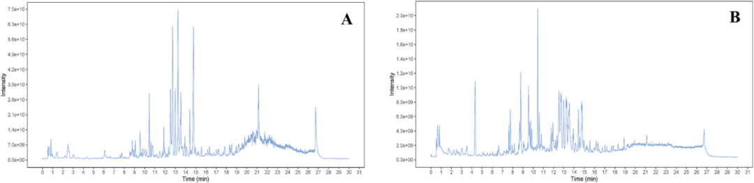给正常大鼠给药后,在血浆中检测到19种入血成分,通过它们的保留时间、加合离子形式及其碎片信息进行了鉴定(表1)。化合物的总离子色谱(TIC)结果如图5所示。