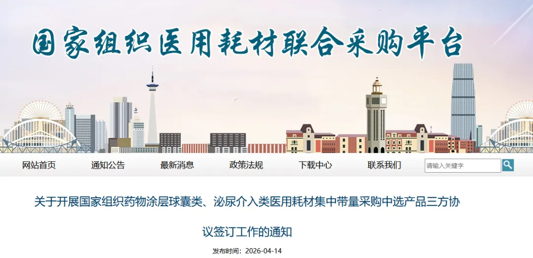 近日,国家组织医用耗材联合采购平台发布《关于开展国家组织药物涂层球囊类、泌尿介入类医用耗材集中带量采购中选产品三方协议签订工作的通知》(以下简称:《通知》),第六批耗材国采即将落地。