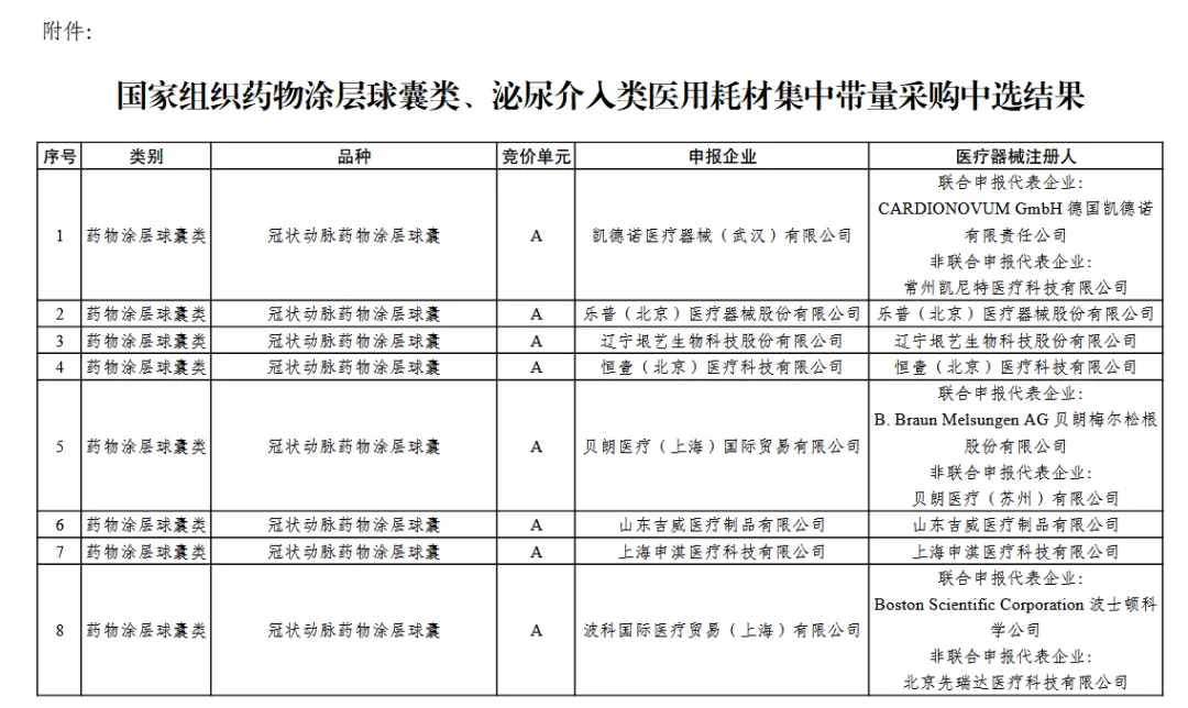 从中选企业构成来看,本次中标企业既包括美敦力、贝朗医疗等外资企业,也包括乐普医疗、微创医疗等本土企业,中外企业同台竞技、主流产品广泛中选。