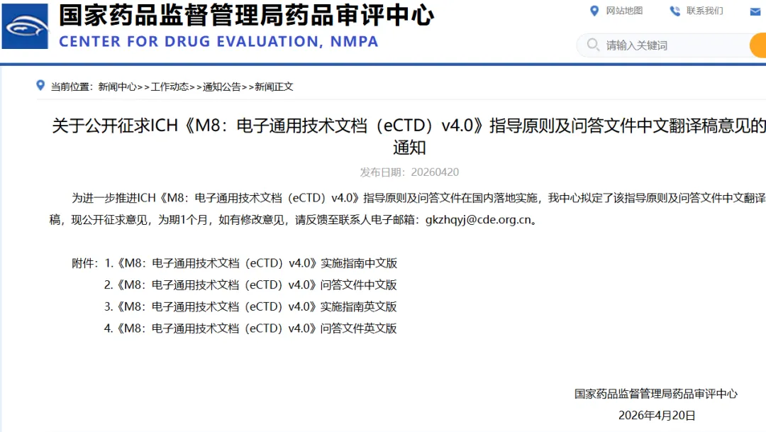 重磅!CDE公开征求ICH eCTD v4.0中文译稿意见,中国药品注册即将迈入4.0时代