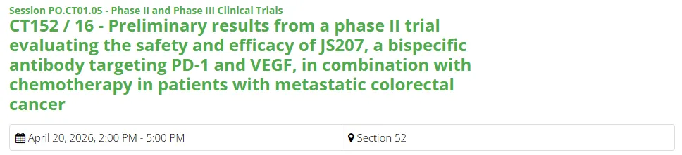 另一项是 JS207 联合化疗一线治疗微卫星稳定或错配修复完整(MSS/pMMR)型转移性结直肠癌(mCRC)的 II 期临床研究。