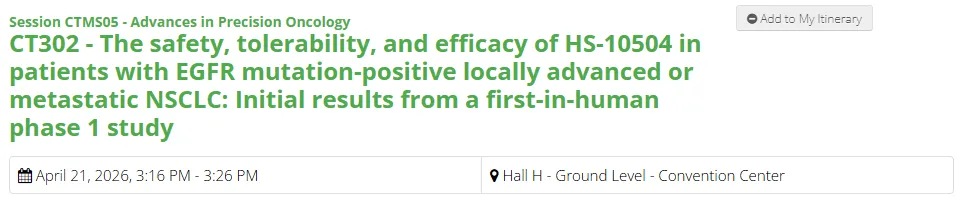 HS-10504 治疗 EGFR 突变阳性 NSCLC 的首次人体研究