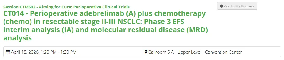 阿得贝利单抗联合化疗围手术期治疗 NSCLC 的 III 期临床