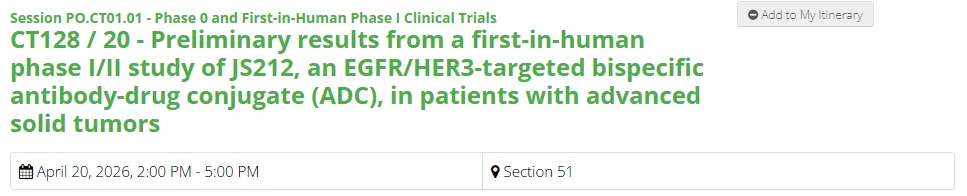 在本次 AACR 年会上,君实生物公布了 JS212 的首次人体临床研究初步结果,成为全球第二款公布临床研究结果的 EGFR/HER3 双抗