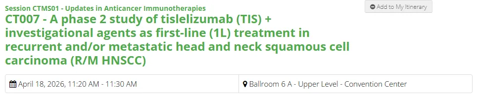 替雷利珠单抗联合用药一线治疗头颈鳞癌的 II 期临床