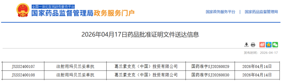 注:本文不构成任何投资意见和建议,以官方/公司公告为准;本文仅作医疗健康相关药物介绍,非治疗方案推荐(若涉及),不代表平台立场。任何文章转载需要得到授权。NMPA最新批件,再次印证了ADC赛道的魅力与变数。4月17日,葛兰素史克的注射用玛贝兰妥单抗(Belantamab mafodotin)在国内获批上市,联合硼替佐米和地塞米松,用于治疗既往接受过至少一种治疗的多发性骨髓瘤成年患者。这是全球首款获