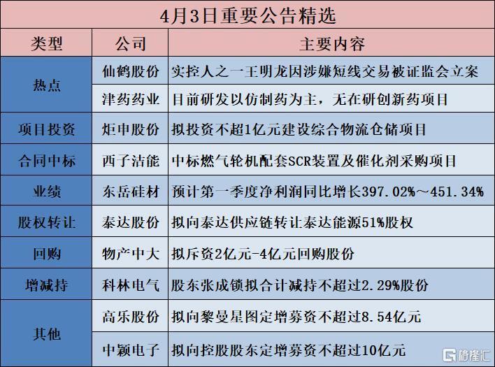 【热点】德科立(688205.SH):目前OCS产品仍处于样品阶段,OCS产品整体投入大且尚处早期阶段电科数字(600850.SH):涉嫌信息披露违法违规被证监会立案仙鹤股份(603733.SH):实控人之一王明龙因涉嫌短线交易被证监会立案津药药业(600488.SH):目前研发以仿制药为主,无在研创新药项目【项目投资】云南锗业(002428.SZ):拟实施高品质磷化铟单晶片建设项目炬申股份(00