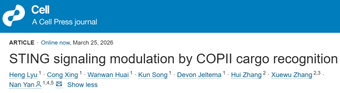 cGAS-STING信号通路在先天免疫、炎症、癌症及神经退行性疾病中发挥着重要作用。cGAS能够识别细胞内的双链DNA,并催化合成cGAMP;作为一种第二信使,cGAMP可激活STING。与cGAMP结合之后,STING便会发生寡聚化,并从内质网转运至高尔基体;这一转运过程是由COPII囊泡介导的。在高尔基体上,STING招募TBK1;TBK1随后对STING进行磷酸化修饰,进而招募IRF3并激活