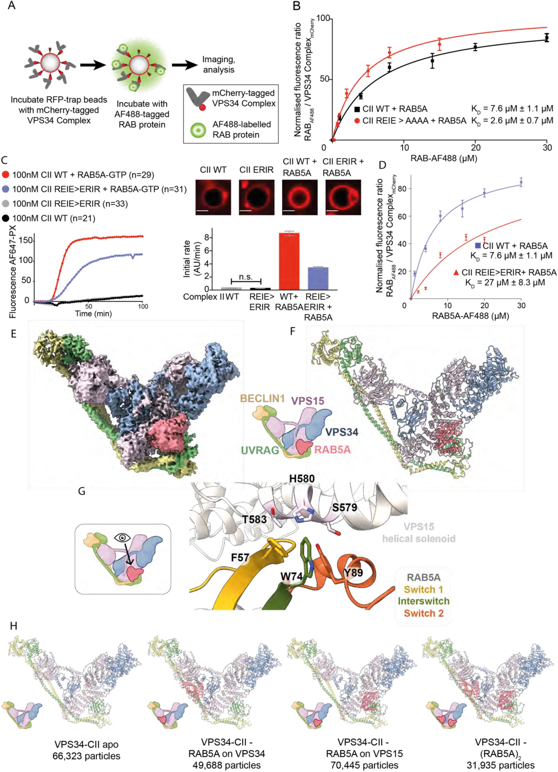 AbstractRAB5-GTP activation of the multiprotein VPS34 complex II (VPS34-CII) is critical for endosomal sorting and maturation, phagocytosis, and receptor downregulation. RAB5-GTP activates VPS34-CII,