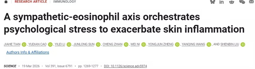 压力如何加剧特应性皮炎(通常称为湿疹)的谜团可能离被解开更近了一步。发表在《科学》杂志上的一项新研究,识别出了一种特定的神经通路,有助于解释这种联系。 压力与皮肤 湿疹是一种导致皮肤干燥、瘙痒的慢性疾病。它在儿童中很常见,但可发生于任何年龄,通常由环境刺激物、遗传因素或过度活跃的免疫系统引发。而长期以来,人们已知压力会使病情恶化。 为了确切发现焦虑情绪如何导致湿疹特征性的剧烈瘙痒和皮肤发红,复旦大