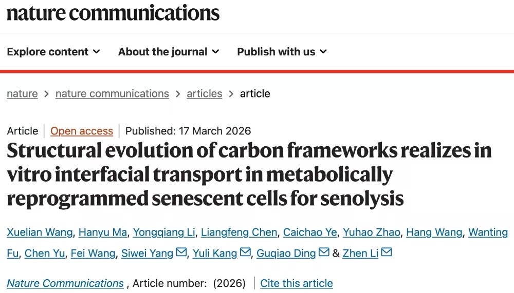细胞衰老(cellular senescence)被认为是机体衰老和多种慢性疾病的重要驱动因素。衰老细胞往往“老而不死”,不仅失去正常功能,还会通过衰老相关分泌表型(SASP)持续破坏组织微环境。因此,如何在复杂体内环境中实现对衰老细胞的精准识别与选择性清除,一直是抗衰老领域的核心挑战之一。 2026年3月17日,上海交通大学医学院李真联合中国科学院上海微系统与信息技术研究所丁古巧/杨思维在Nat