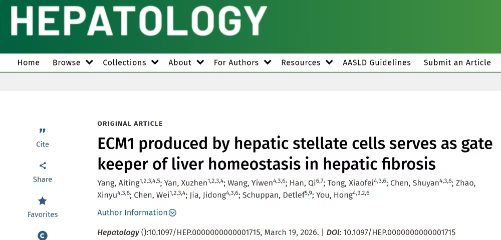 肝星状细胞(HSC)的活化是肝纤维化的核心环节,但新近证据提示HSC亦具有稳态维持功能。 2026年3月19日,首都医科大学尤红独立通讯在Hepatology 在线发表题为ECM1 produced by hepatic stellate cells serves as gate keeper of liver homeostasis in hepatic fibrosis的研究论文。 该研究比较