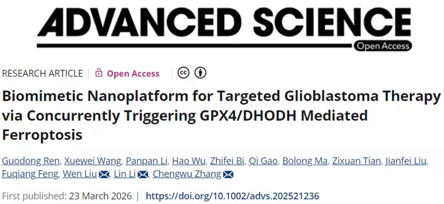 多形性胶质母细胞瘤(GBM)是恶性程度最高、致死性最强的脑肿瘤,对人类健康构成严重威胁。传统治疗方案难以取得理想疗效,因此亟需研发更为有效的干预策略。铁死亡作为一种新型细胞死亡方式,在胶质母细胞瘤治疗中展现出潜在应用价值。但肿瘤自身固有的抗铁死亡防御系统会显著削弱其治疗效果;此外,仅通过单一靶点调控诱导铁死亡的策略效果有限。因此,亟需同时抑制抗铁死亡调控因子,以阻断肿瘤代偿通路,实现对肿瘤的强效清