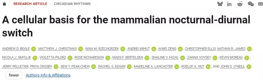 早期哺乳动物祖先曾是夜行性的,在恐龙统治陆地的时代,它们白天睡觉。然而,包括人类祖先在内的一些哺乳动物谱系,独立地转变为昼行性。科学家现已发现了人类为何不是夜行性的原因。一项发表在《科学》杂志上的新研究表明,答案就在基因里。 这种转变是如何发生的,长期以来一直是个谜,因为大脑的主生物钟在夜行性和昼行性物种中的工作方式相似。 细胞、信号与日常节律 新的研究表明,关键差异不在于大脑的"布线",而在于单