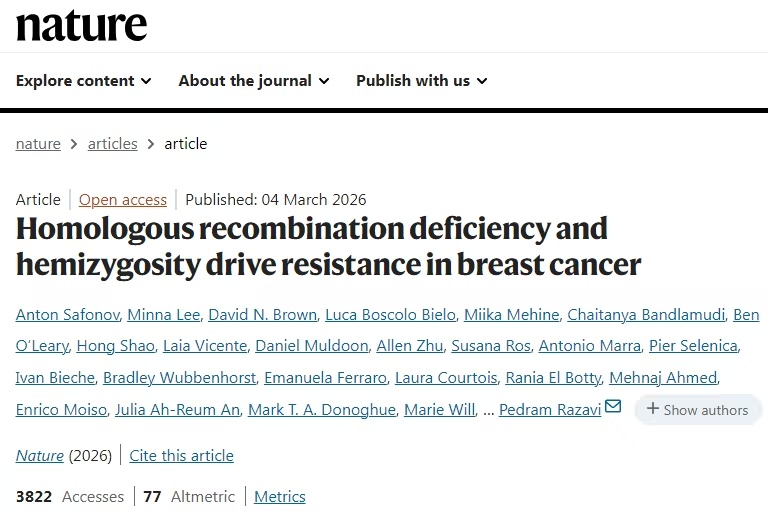 当你正在下一盘棋,对手却在你落子之前就看清了你所有的战术,这听起来像是不公平的对决,但对于携带BRCA2基因突变的乳腺癌患者来说,这样的场景可能即将成为现实。 日前,一篇发表在国际杂志Nature上题为“Homologous recombination deficiency and hemizygosity drive resistance in breast cancer”的研究报告中,来自美国