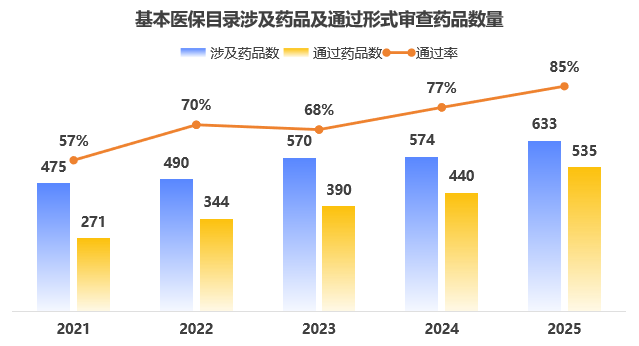 /01/医保谈判目录调整竞争加剧2026年医保目录调整的序幕已经拉开,与往年相比,今年的竞争态势呈现出激烈程度。国家医保局医药服务管理司司长黄心宇指出,医保支持创新的总基调不会变,但创新的“含金量”将成为决定性因素。这一导向的核心在于, 评审规则将进一步强化以药品临床价值为导向 ,坚决杜绝“伪创新”和“微创新”。从申报端来看,药品数量的激增给专家评审带来了巨大压力。2025年医保目录形式审查 通过