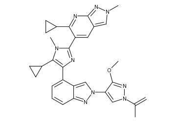 示例化合物专利简介:据报道,STING(TMEM173)拮抗剂可用于治疗癌症、阿尔茨海默病、类风湿性关节炎、心力衰竭、脓毒症、间质性肺病、非酒精性脂肪性肝炎和布卢姆综合征等疾病。在DSF(differential scanning fluorimetry)测定中,示例性化合物(Ex 7 pg 135, claim 10; EN 1355464)显示出对人STING具有结合亲和力。在竞争性HTRF测