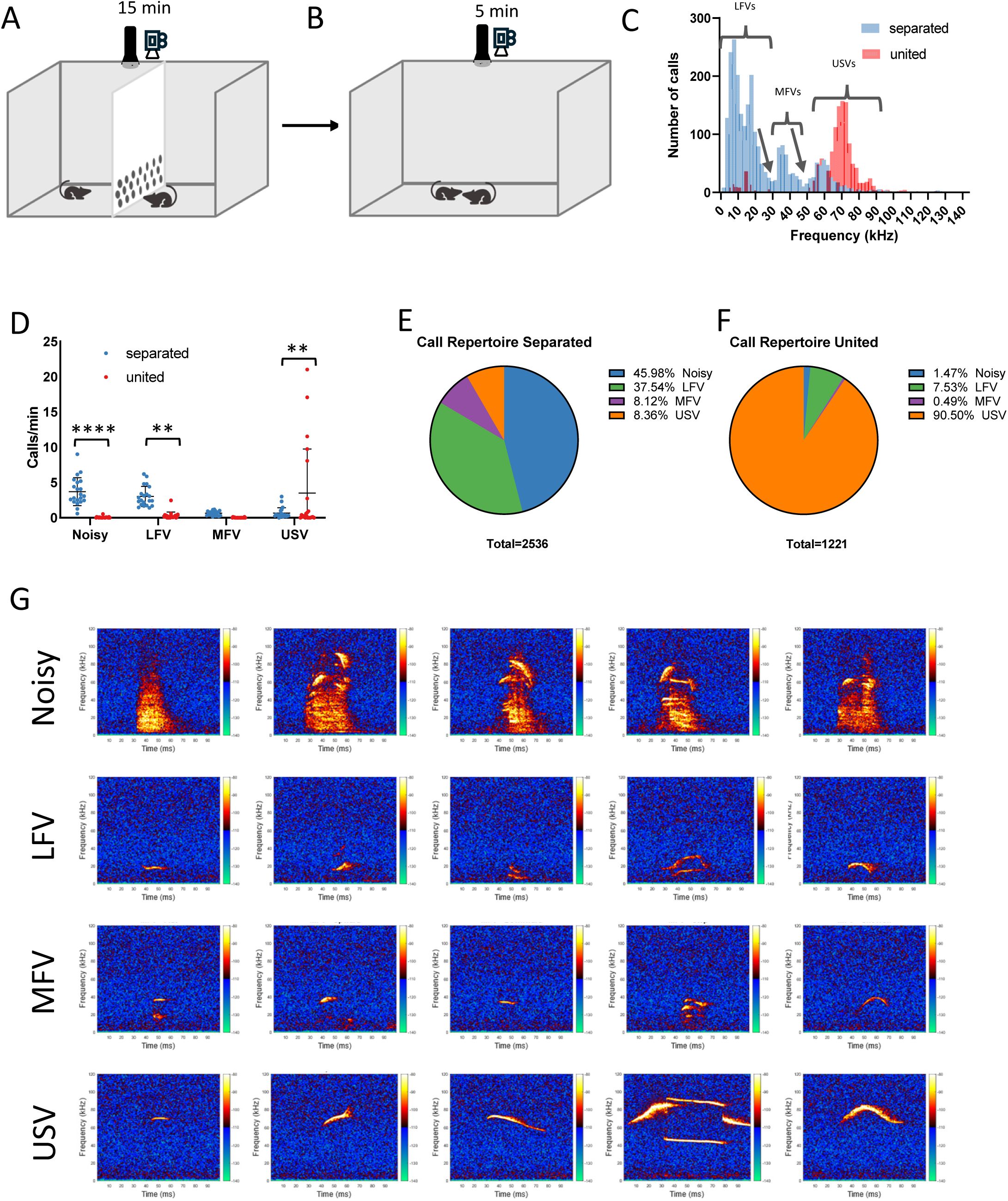 AbstractThe discovery of a diverse repertoire of ultrasonic vocalizations (USVs) sparked interest in understanding their role in mouse social behavior. Social communication in mice is not just vocal,