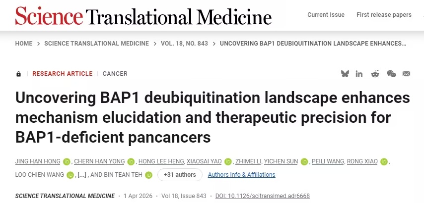 全球每年仅肾癌一种就有超过40万新发病例,而胆管癌、间皮瘤和葡萄膜黑色素瘤虽然相对少见,却以高度侵袭性和极差的治疗响应著称,这四种看似不相关的癌症其实藏着一个共同的“软肋”,它们都频繁携带BAP1基因的失活突变。BAP1究竟是何方神圣?它失活后为何能让癌细胞如此嚣张? 日前,一篇发表在国际杂志Science Translational Medicine上题为“Uncovering BAP1 deu