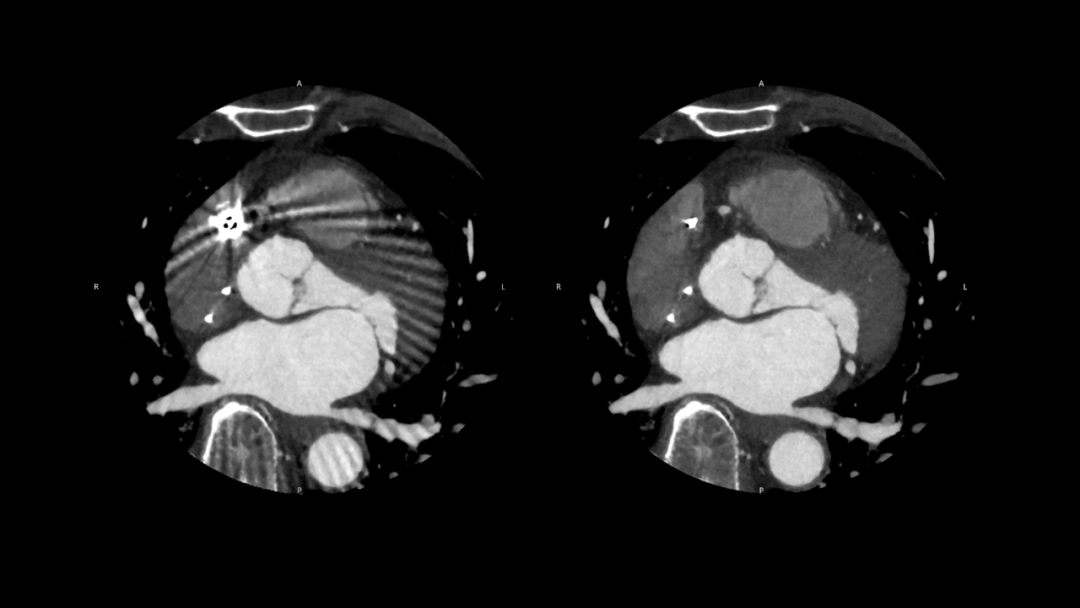 在心血管成像中,针对支架、起搏器等金属植入物带来的伪影影响,结合PIQE超分辨重建与SEMAR金属伪影抑制技术,可在不增加辐射剂量的前提下减少金属伪影对图像的影响,提升周围软组织的显示效果,从而为复杂病例提供更清晰、可靠的影像参考。