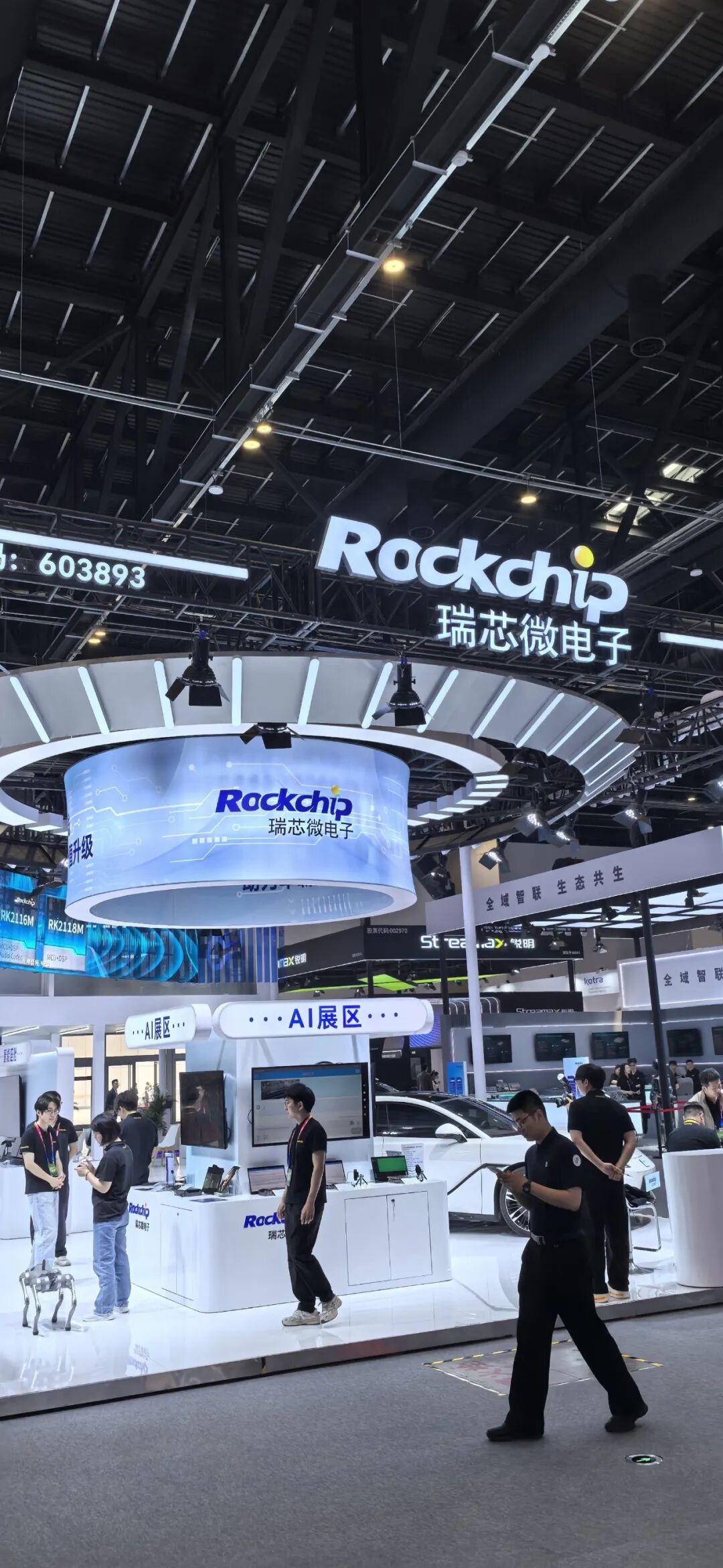 全域智联生态核心企业,独立展出RK2116M、RK2118等全系列车载专用主控芯片,适配智能座舱多屏显示、多路摄像接入、高清视频编解码全场景,性价比优势突出,主打规模化量产座舱芯片普及应用。