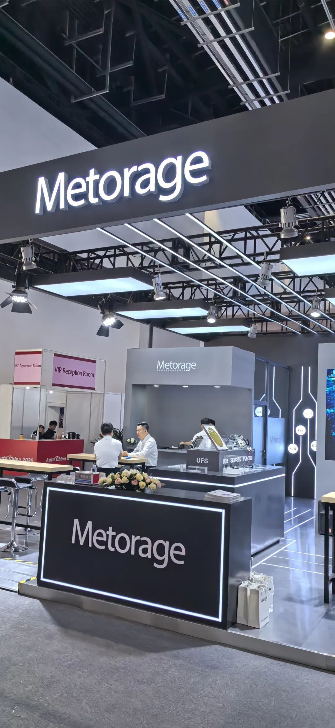 国内头部车规级存储方案厂商,本次车展独立展出全系列车载存储解决方案。现场重磅发布新一代UFS 3.1 车规级存储 TAU208,通过 AEC-Q100 车规认证,宽温、高可靠、抗震动,覆盖智能座舱、自动驾驶、车机系统等场景,提供 eMMC、UFS、LPDDR、SSD 完整存储矩阵,是国产车载存储自主替代主力。