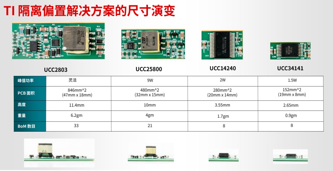 在电力电子领域,功率密度的每一次显著提升,本质上都是在与“磁性元件”和“散热”作斗争。回溯TI隔离偏置解决方案的尺寸演变路径,我们可以清晰地观察到技术进化的底层逻辑。
