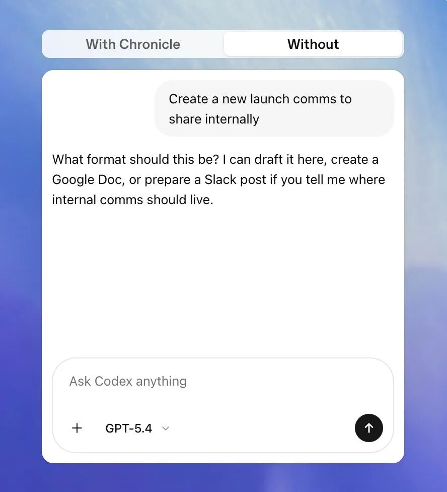 没有 Chronicle 的 memory,Codex 不知道 launch comms 该放哪里