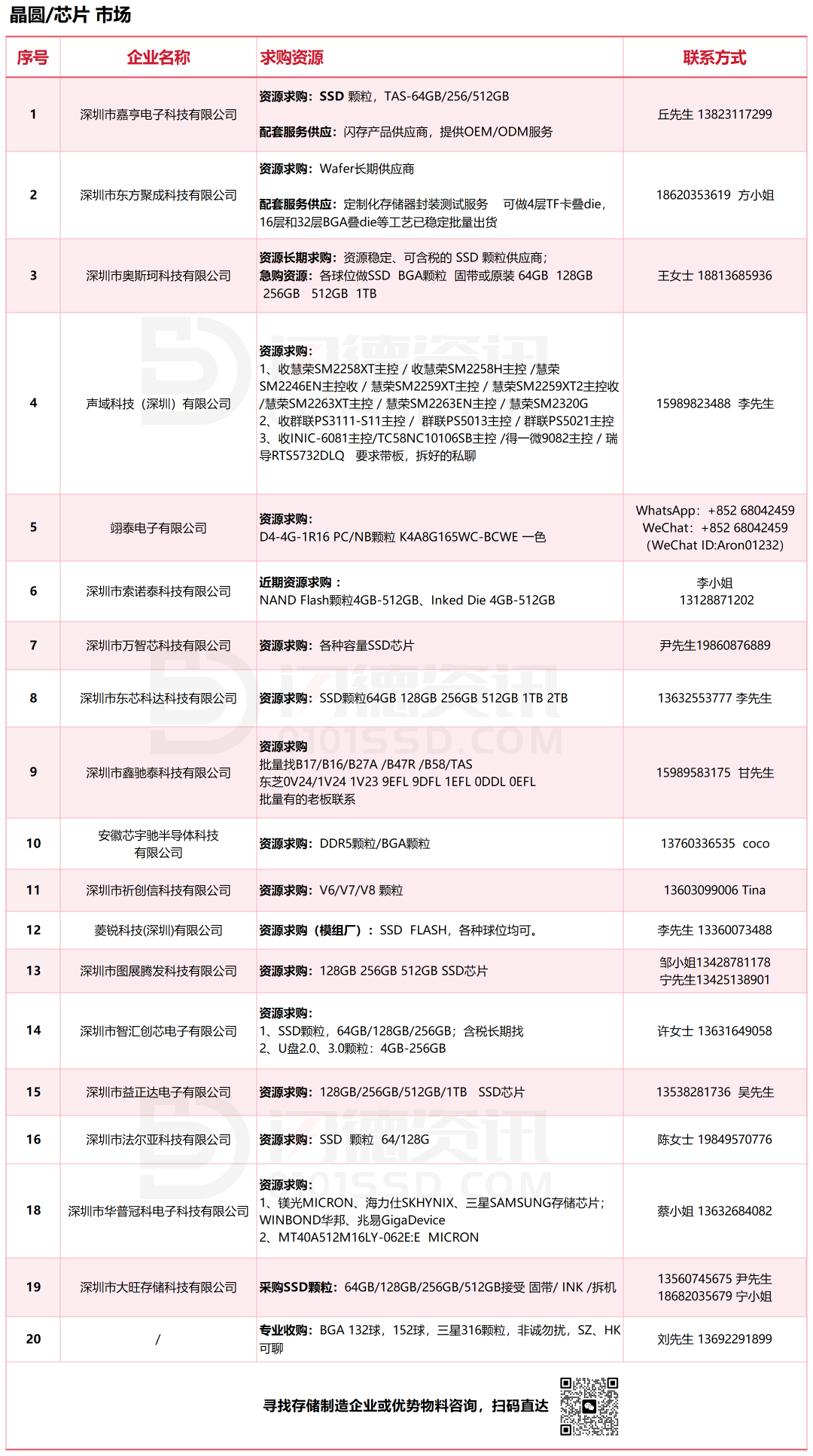 长期求购:稳定含税的SSD颗粒及内存条供应商。