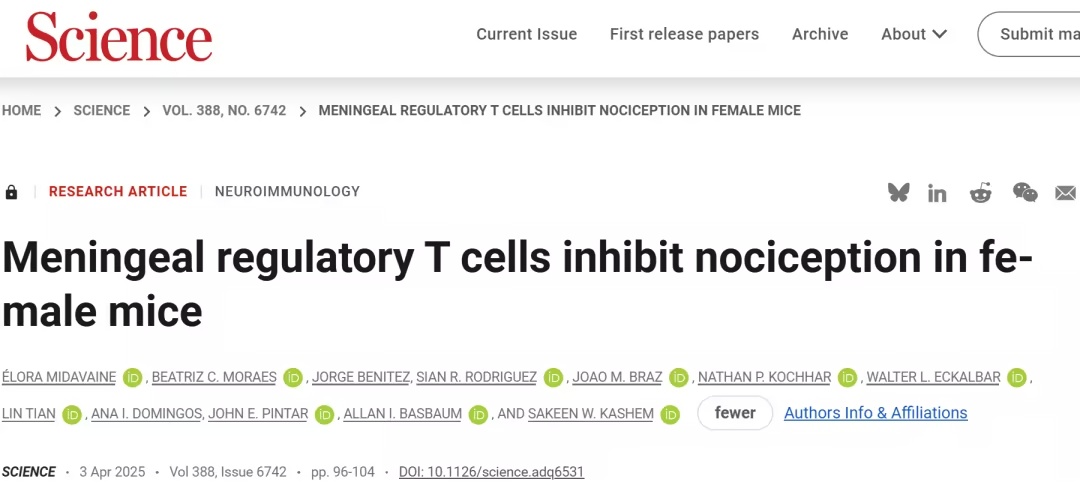 为什么女性对疼痛更敏感?为何激素治疗会影响痛感?一个长期困扰医学界的谜题可能刚刚被揭晓。最新研究揭示,包裹大脑和脊髓的脑膜中,驻留着一群特殊的调节性T细胞,它们竟是直接调控疼痛感知的“哨兵”,且其功能呈现显著的性别差异。这一发现不仅首次揭示了T细胞不依赖免疫抑制功能的直接镇痛作用,也为开发性别特异性疼痛疗法提供了全新靶点。 从免疫抑制到直接镇痛:Treg细胞的全新角色 调节性T细胞(Treg)传统