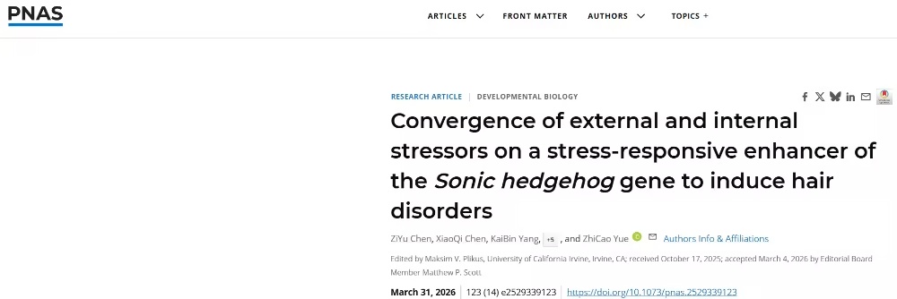 哺乳动物持续暴露于多种内源性与外源性应激源。尽管毛囊(HFs)对应激极为敏感,但应激诱导的反应如何与毛囊生长、周期及再生的内在调控因子相关联,目前尚不明确。 2026年3月31日,深圳大学乐志操独立通讯在PNAS 在线发表题为Convergence of external and internal stressors on a stress-responsive enhancer of the S
