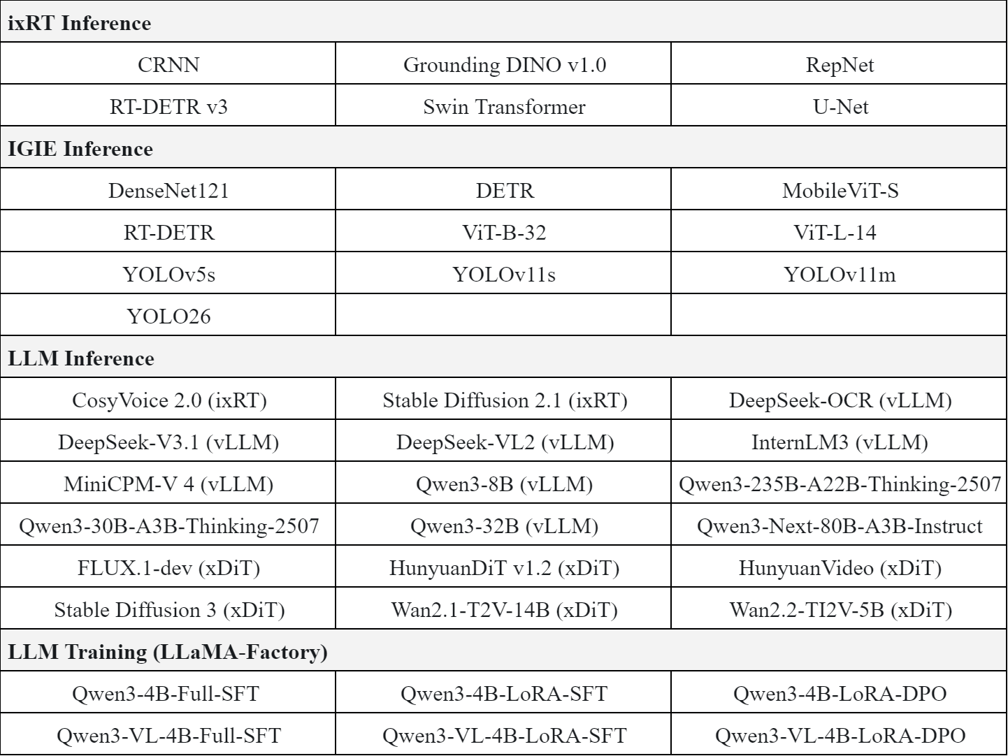 近日,天数智芯主导的DeepSpark开源社区,正式发布了百大应用开放平台26.03版本。 百大应用开放平台作为国内领先的AI与通用计算应用开发及评测平台,甄选数百个与行业应用深度耦合的开源算法和模型,支持主流生态应用框架,并针对行业需求构建多维度评测体系,广泛支持各类落地场景。 26.03版本持续丰富DeepSparkInference(https://gitee.com/deep-spark/