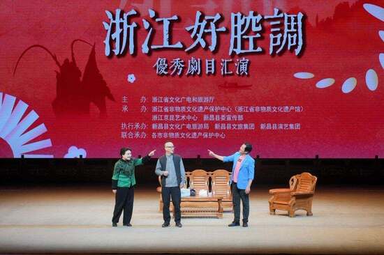 2025“浙江好腔调”全省传统优秀剧目汇演近日在浙江新昌举行,来自浙江全省的13部戏剧精品次第登场,堪称一部立体的“浙派戏曲群芳谱”,尽显其多元共生、异彩纷呈的艺术魅力。杭剧现代小戏《夕阳春光》在汇演现场,松阳高腔《松州令》以八百年锣鼓韵律敲响华彩序幕,磅礴气势瞬间点燃全场。随后,新昌调腔《失子惊疯》《白蛇传·毁塔》展现“中国戏曲活化石”的深厚底蕴;婺剧《梳妆》《三担米》兼具经典韵味与创新表达;甬