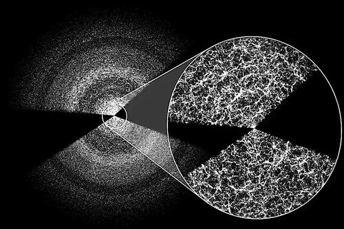 这张宇宙地图的一小部分展示了以地球为中心,银道面上下的星系与类星体分布。本报讯 一个为期5年的巡天观测项目现已圆满结束,共捕获了4700万个星系与类星体,从而使研究人员能够对有史以来最详尽的三维(3D)宇宙地图进行最后的润色。这些数据有望解开暗能量正在减弱的谜团,而这种现象一旦证实,可能会颠覆现有的宇宙标准模型。美国亚利桑那州基特峰国家天文台的暗能量光谱仪(DESI),自2021年起一直在持续扫描